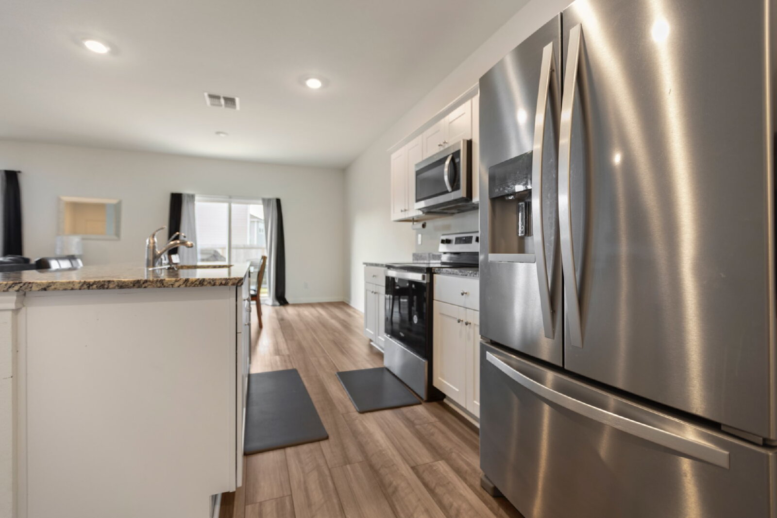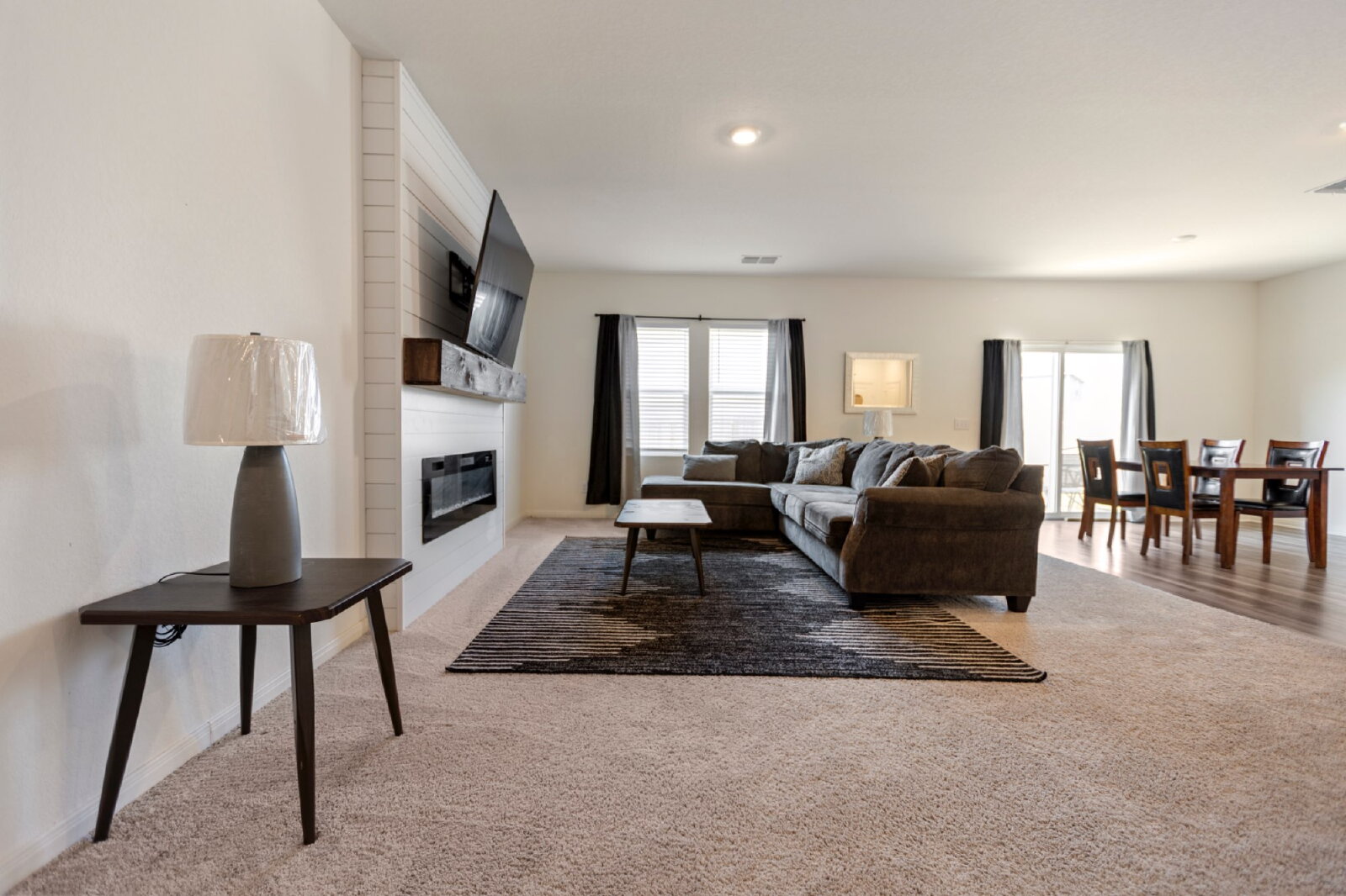 You’ll love this spacious two-story home offering 4 bedrooms, 2.5 bathrooms, and a versatile loft that’s perfect for a home office or play area. The open-concept living, dining, and kitchen space flows seamlessly to the patio, creating an ideal layout for entertaining and everyday living. Enjoy cozy evenings with the modern electric fireplace, and take advantage of the fully fenced backyard that’s just the right size for relaxing or play. Community amenities include a sparkling pool, playground, and basketball court, giving you plenty of ways to unwind close to home.