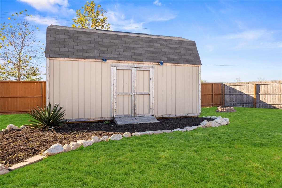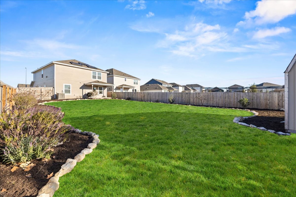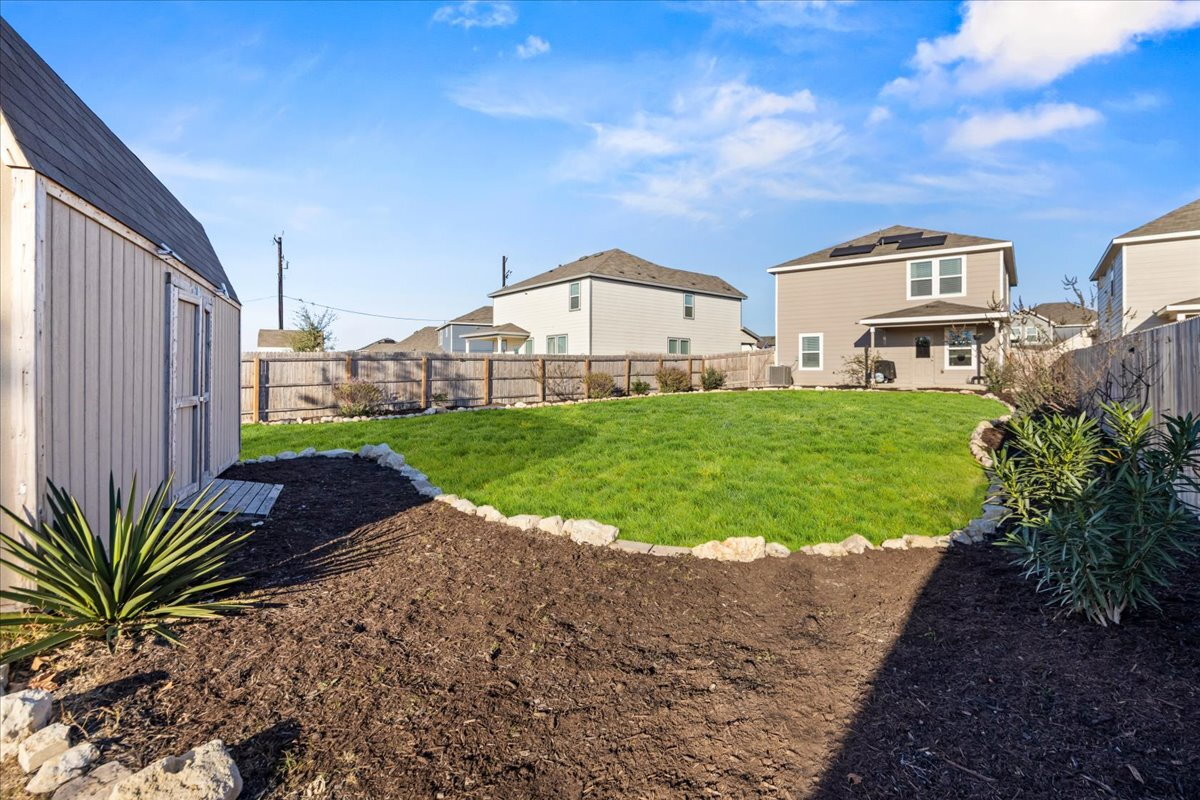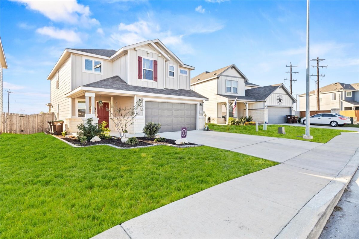 Situated on one of the largest lots in the neighborhood with no rear neighbors, this beautifully maintained two-story home offers exceptional space, privacy, and a versatile layout to fit a variety of lifestyles. The flexible floor plan includes a convenient first-floor bedroom and two separate living areas, ideal for everyday living, entertaining, or a home office. Enjoy beautifully landscaped front and backyard spaces along with an oversized storage shed for extra storage or hobbies. Energy-efficient solar panels provide long-term savings, and the home includes a water softener for added comfort. Refrigerator, washer, and dryer are included. Conveniently located less than 15 minutes from Lackland Air Force Base and about 10 minutes from H-E-B with easy access to Highway 211 and Highway 90 in the growing Horizon Ridge community. Like new and move-in ready.