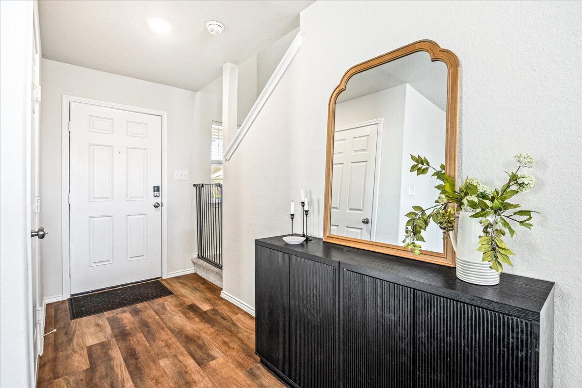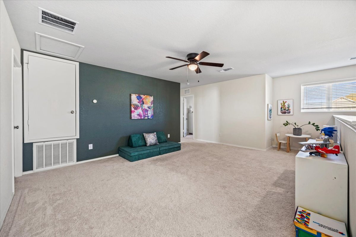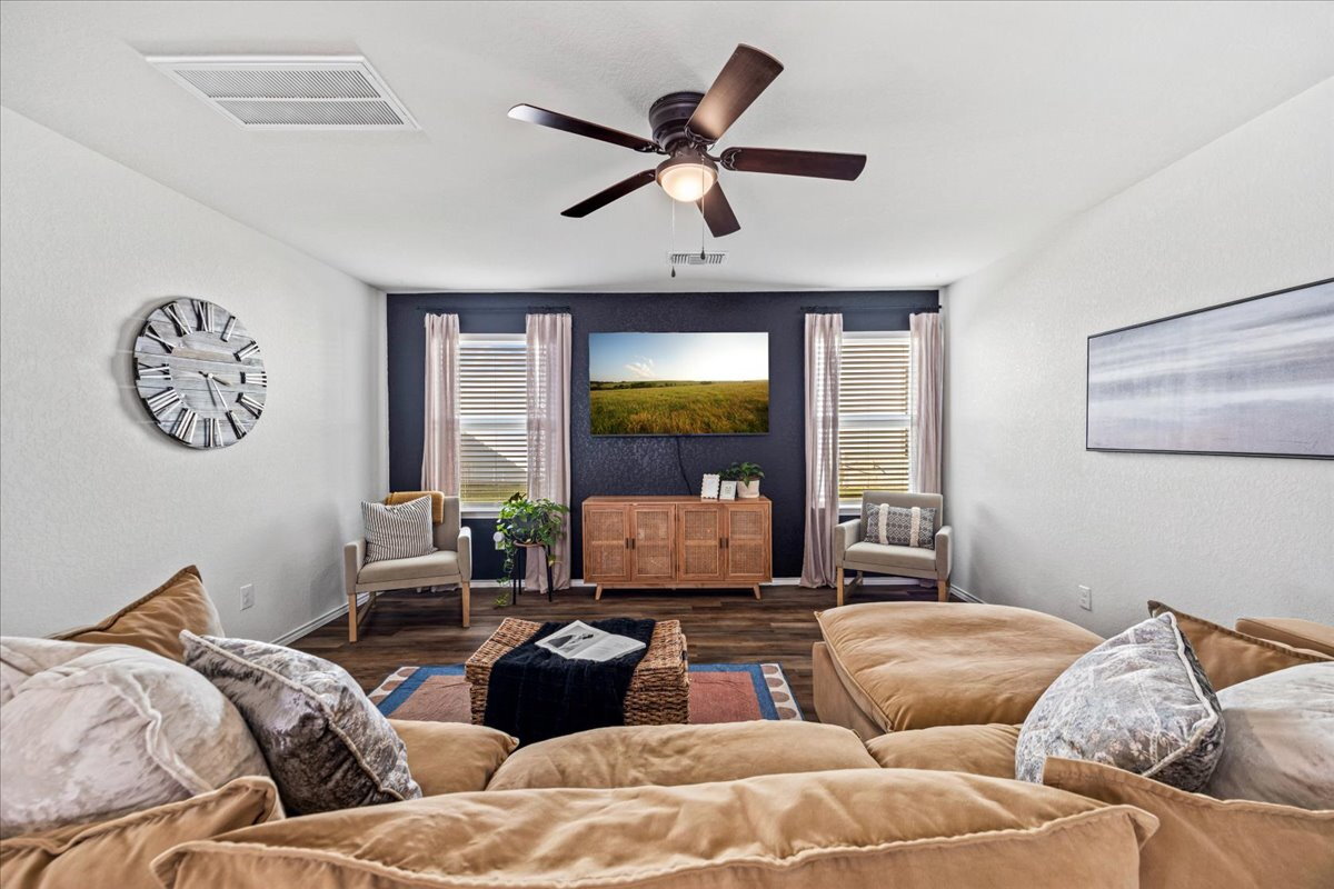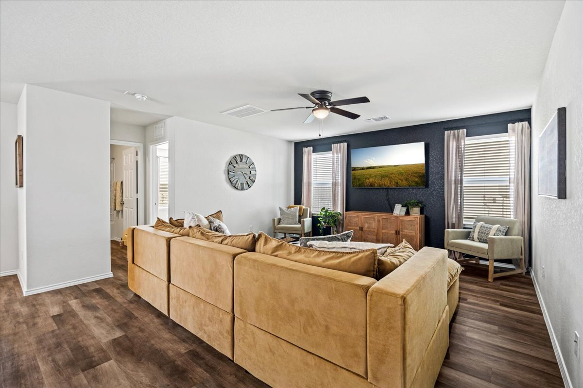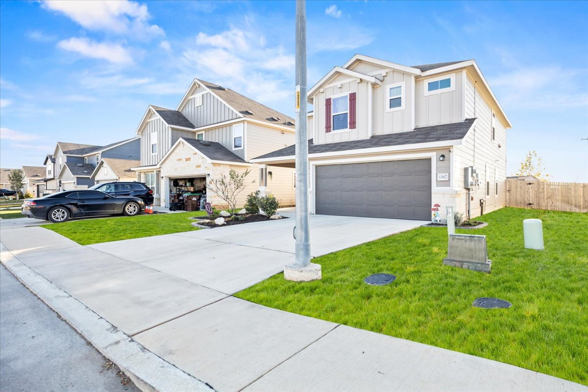 Situated on one of the largest lots in the neighborhood with no rear neighbors, this beautifully maintained two-story home offers exceptional space, privacy, and a versatile layout to fit a variety of lifestyles. The flexible floor plan includes a convenient first-floor bedroom and two separate living areas, ideal for everyday living, entertaining, or a home office. Enjoy beautifully landscaped front and backyard spaces along with an oversized storage shed for extra storage or hobbies. Energy-efficient solar panels provide long-term savings, and the home includes a water softener for added comfort. Refrigerator, washer, and dryer are included. Conveniently located less than 15 minutes from Lackland Air Force Base and about 10 minutes from H-E-B with easy access to Highway 211 and Highway 90 in the growing Horizon Ridge community. Like new and move-in ready.